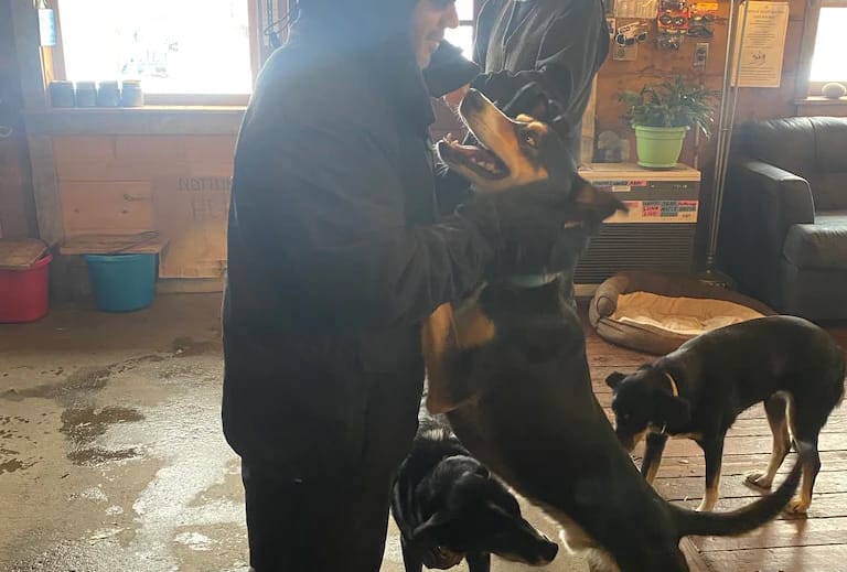 He refers to them as "The Un-chained Gang," as his operation is one of very few in North America where dogs are free roaming. The gang currently consists of 33 dogs.